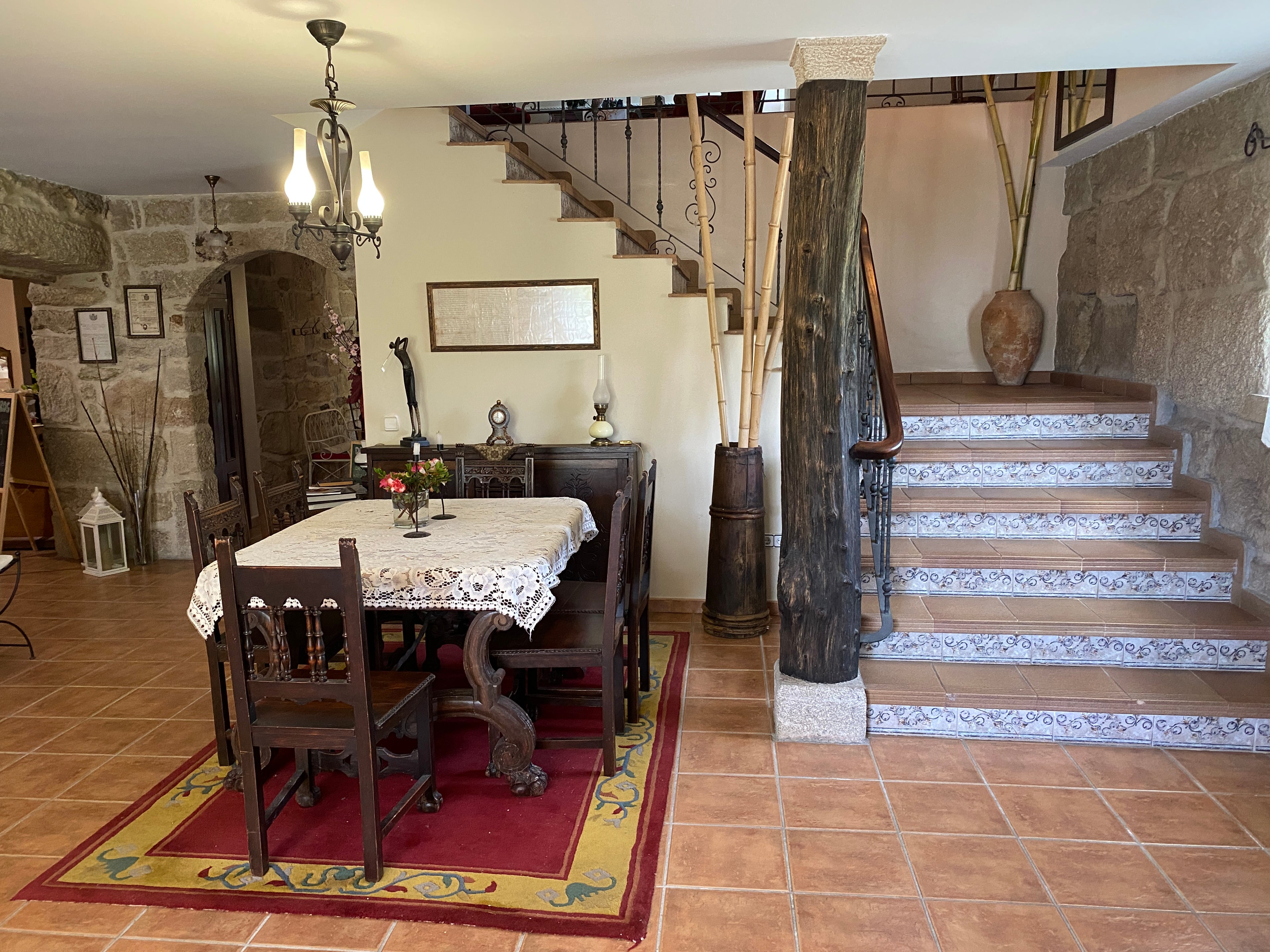 La casa presenta una cuidada y acogedora decoración de estilo rústico en todas sus espacios. Todas las habitaciones cuentan con baño privado y televisión, dotadas de los servicios necesarios para garantizar una estancia confortable, y se ofrecen tanto opciones dobles como familiares. Dispone, además, de salones especialmente concebidos para la lectura y el descanso. Asimismo, se dispone de conexión WiFi gratuita en todo el alojamiento.