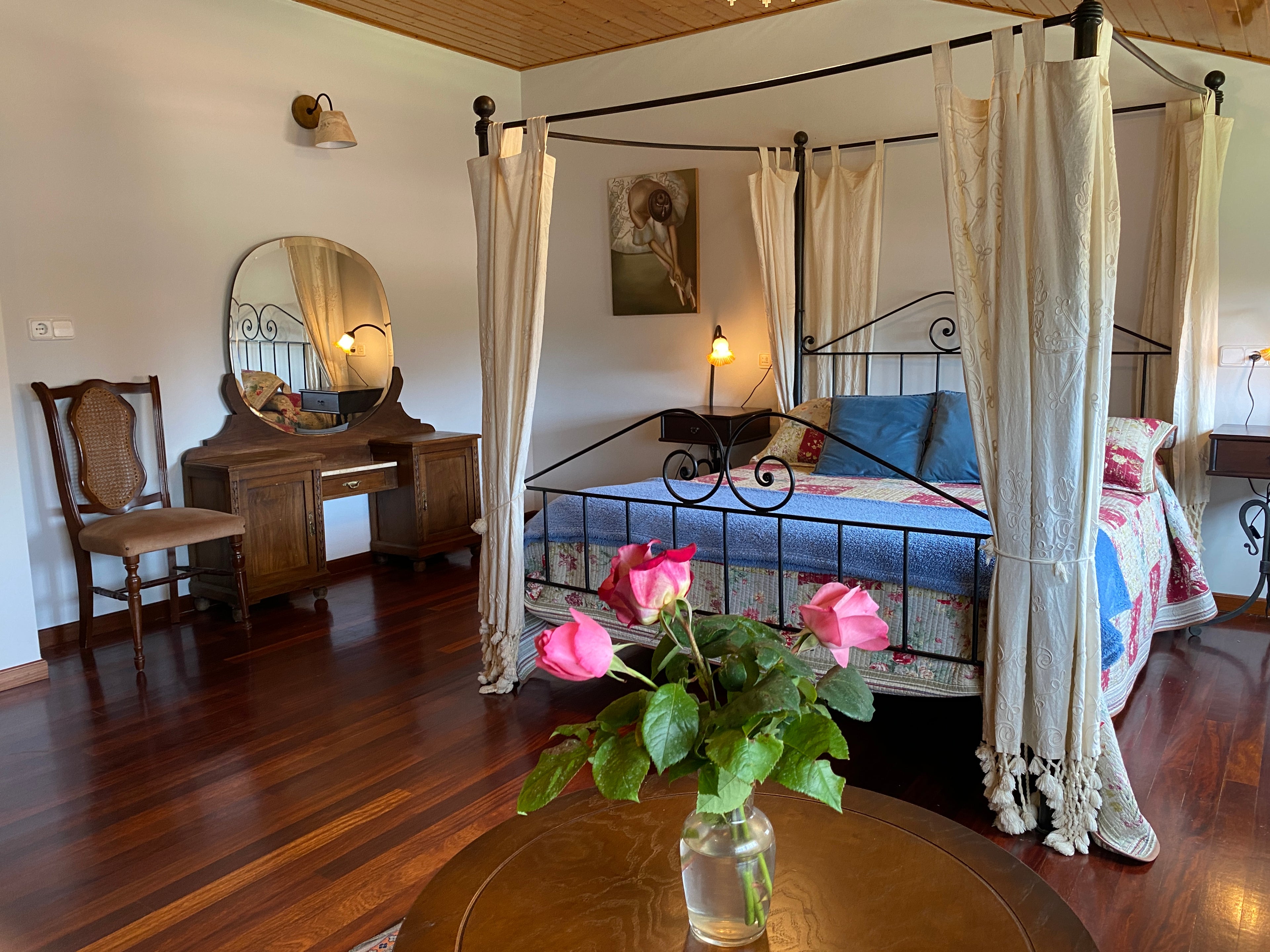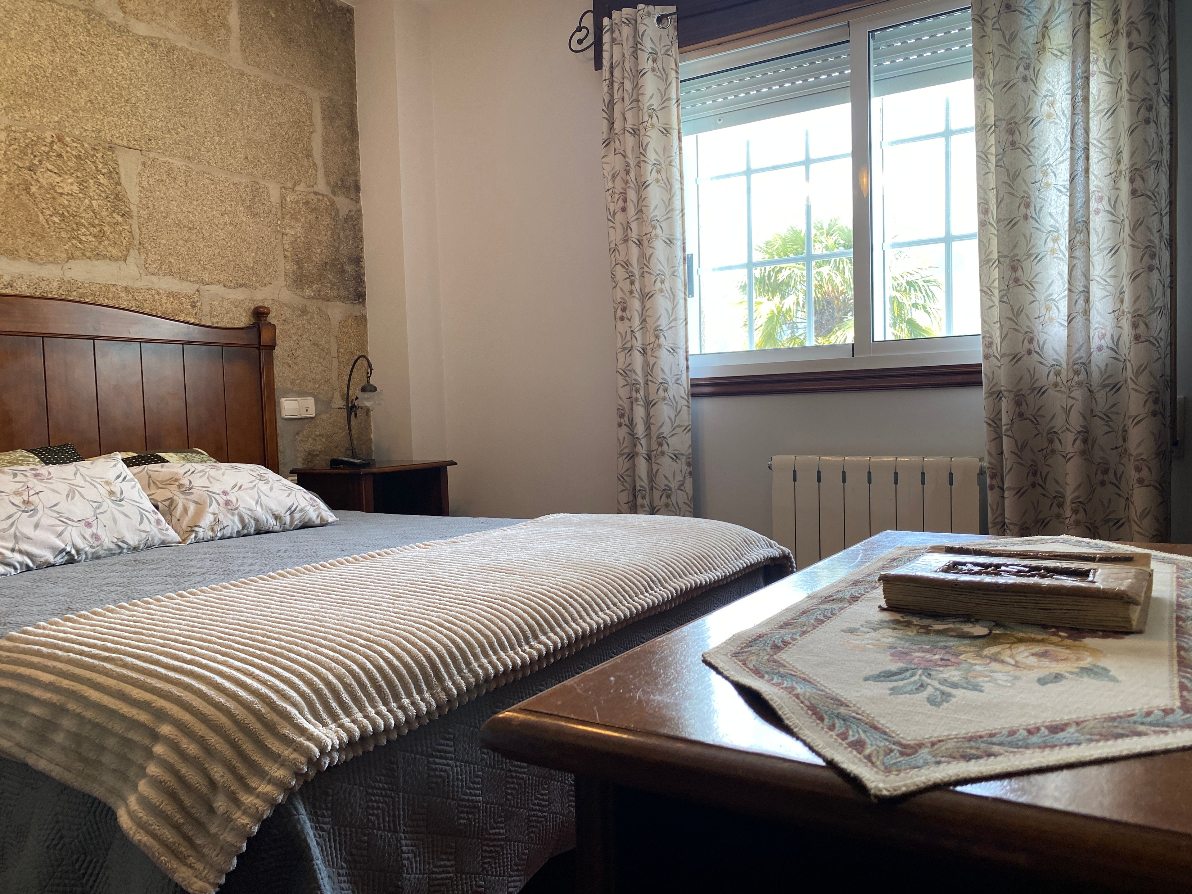Nuestra casa ofrece varias habitaciones disponibles para alquiler individual, cada una equipada con baño privado, televisión de pantalla plana, lencería, toallas y amenities. Todas están decoradas con un estilo rústico y mobiliario clásico, combinando encanto tradicional con todas las comodidades modernas, creando un ambiente ideal para disfrutar de momentos de descanso y relajación.